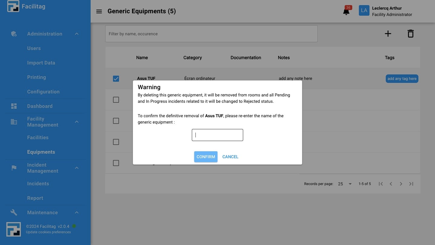 Confirm the definitive removal of the generic equipment