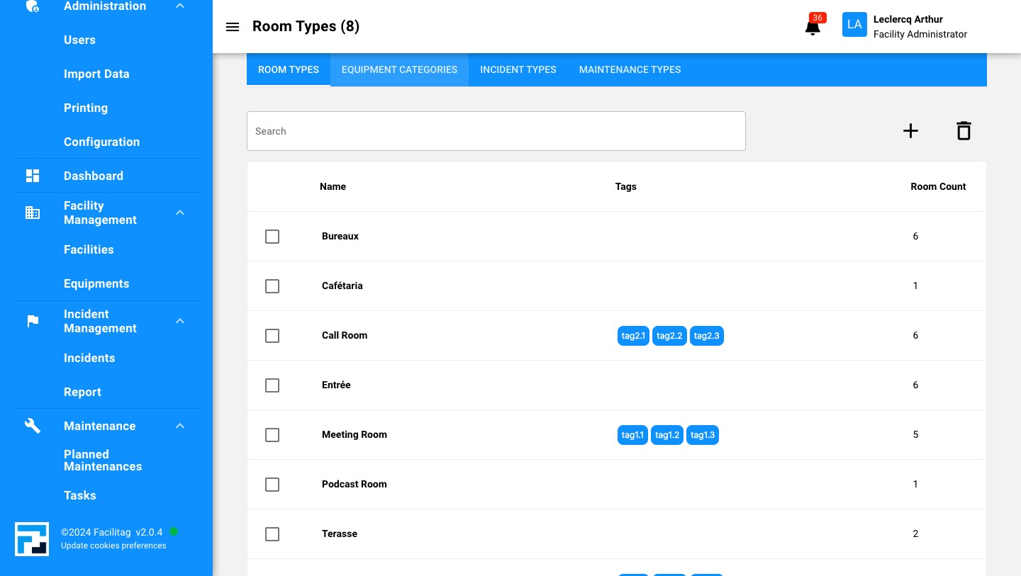 Click on "Equipment categories"