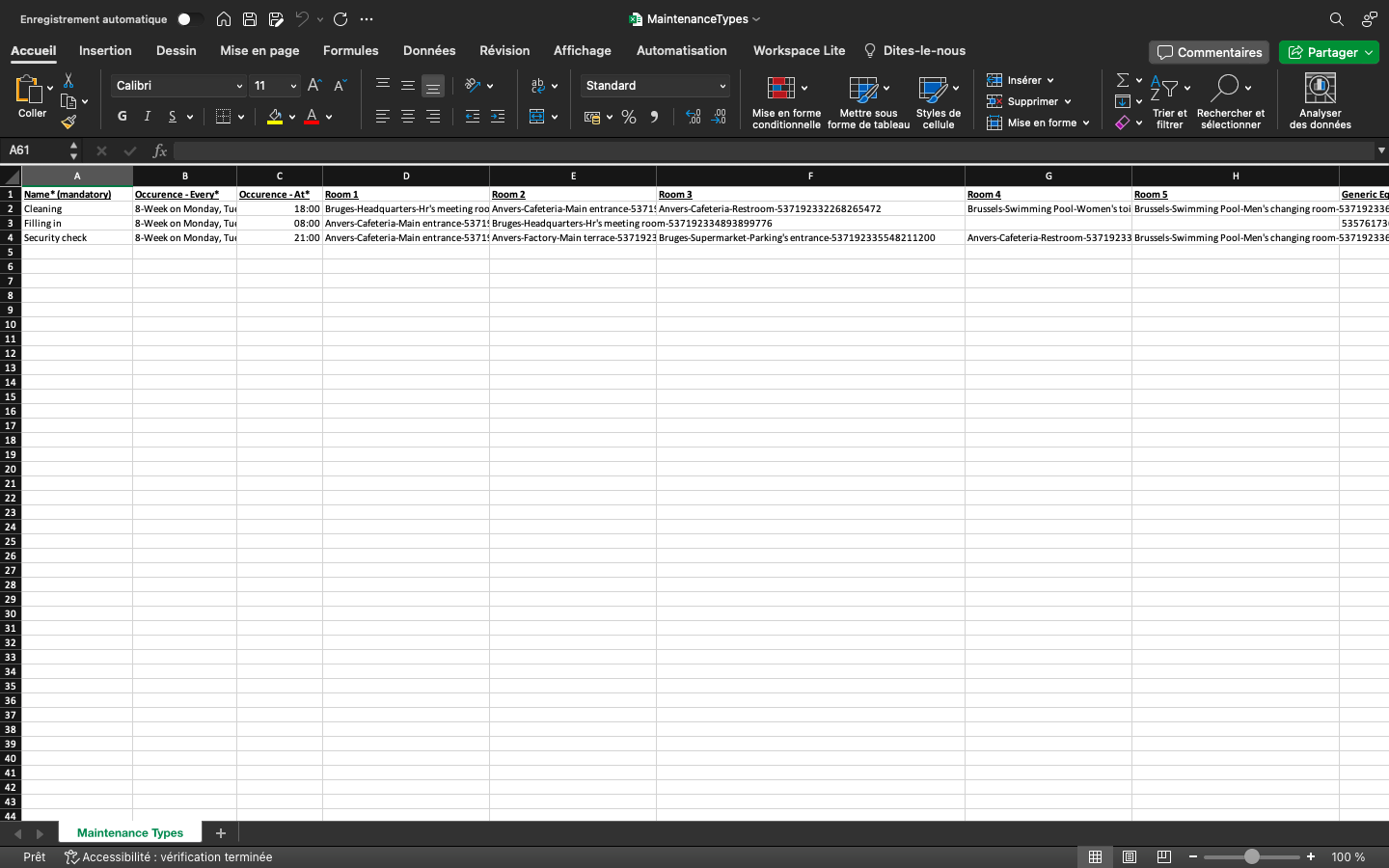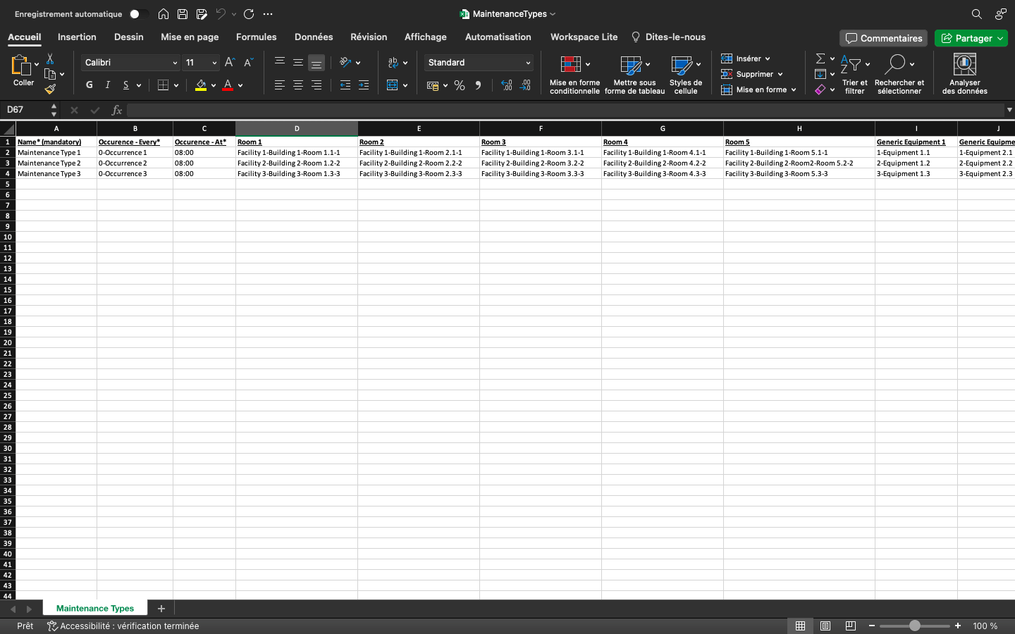 Give names to the maintenance types. Link it to rooms and/or generic equipements. You can add tags