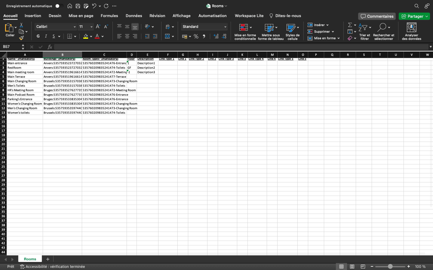 Give names to the differrent rooms. Link it to buildings and room types. You can add description and create external links for additional information when scanning the QR code (see "Add external information to Rooms" Guide).