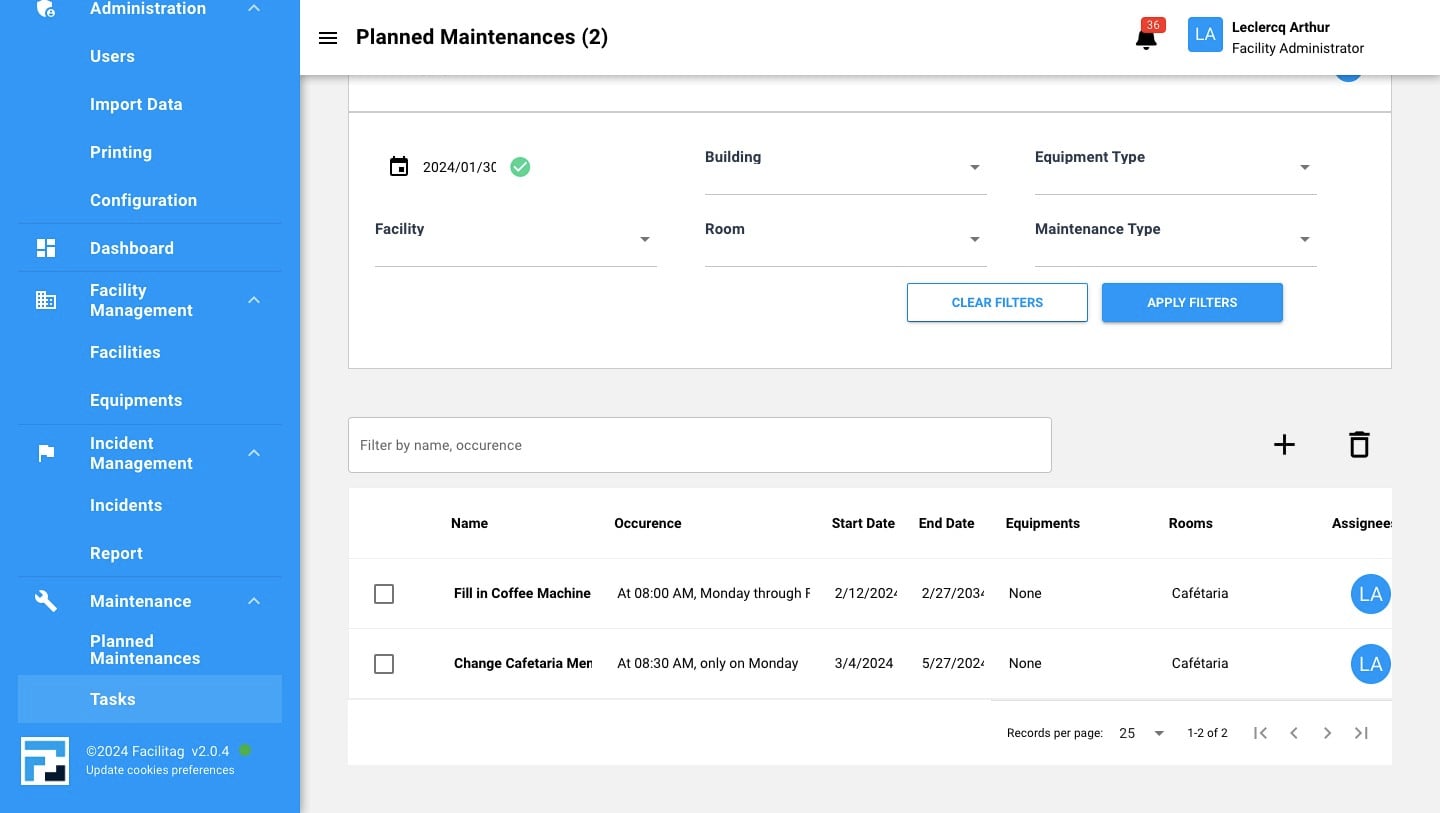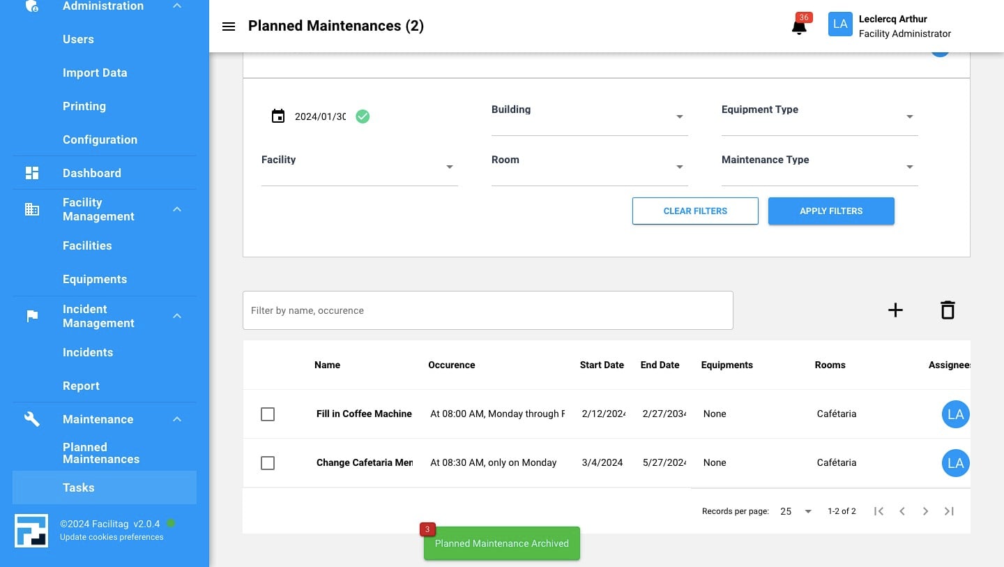 View all your planned Maintenance